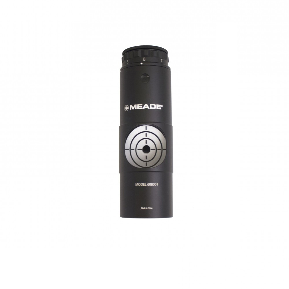 Kolimator lasera Meade pasuje do tubusów ogniskowych o przekątnej 1,25”. W zestawie znajduje się także adapter tubusu ogniskowego 2”, dzięki któremu kolimator może zostać użyty w tubusie o większej średnicy. Kolimator posiada regulację jasności i wymaga jednej baterii CR2032.