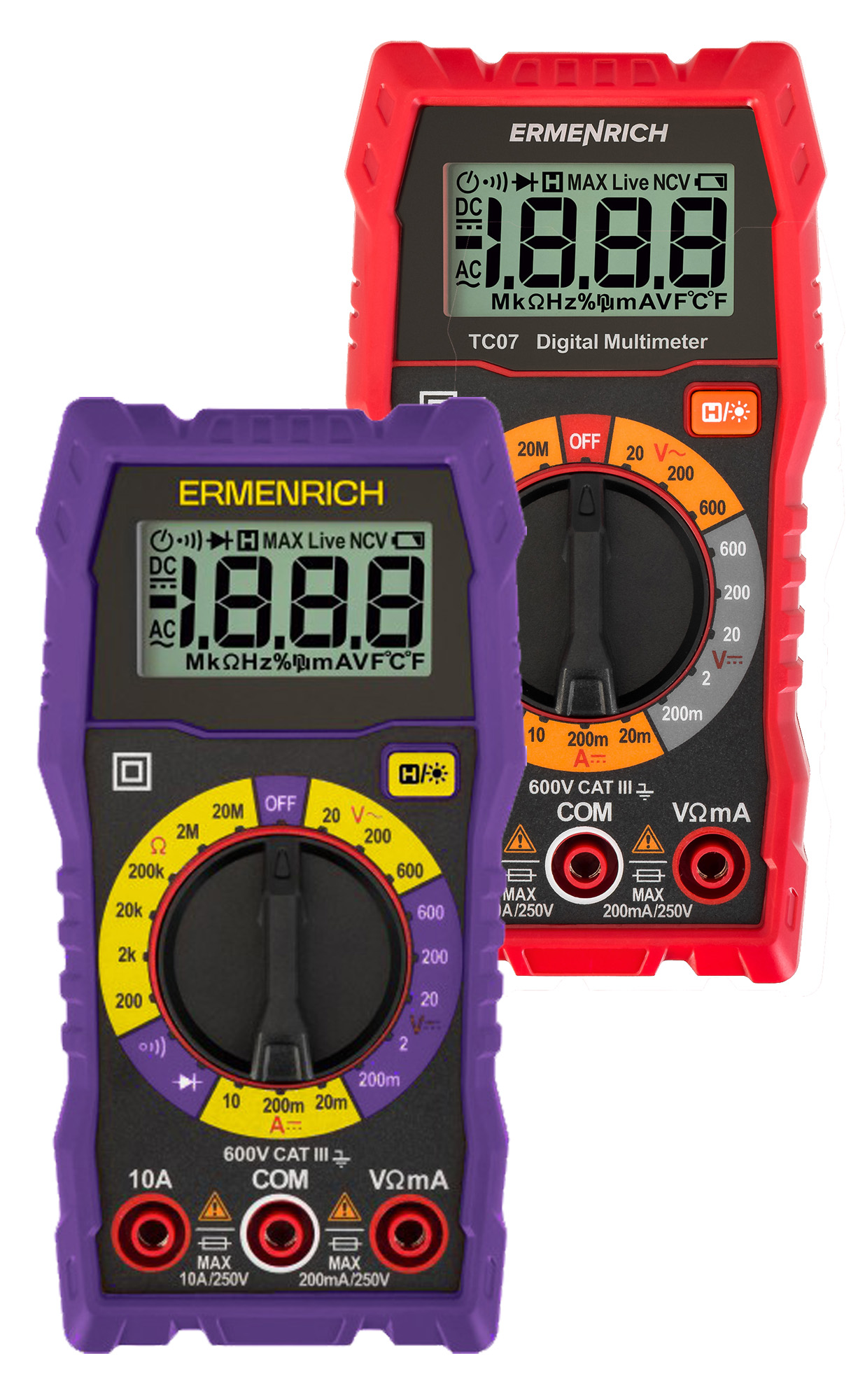 Uniwersalny miernik cyfrowy Ermenrich Zing TC07 z klasycznym przełącznikiem obrotowym jest przeznaczony do pomiaru napięcia prądu stałego i przemiennego, natężenia prądu stałego i rezystancji. Jego funkcje wystarczą do wykonywania większości zadań w domu, a także do wykonywania podstawowych pomiarów w pracy profesjonalnego elektryka.